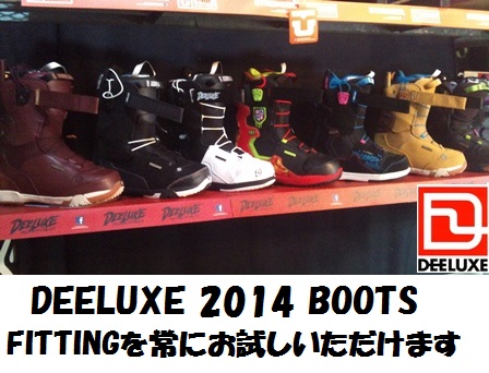 DEELUXE 2014 NEW BOOTSが早くもABEAMに常駐で展開しております!試履きはいつでも可能! 是非色々履いて今から来期モデルのBOOTS選びの参考にしてください! |